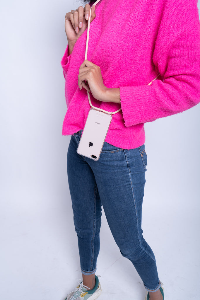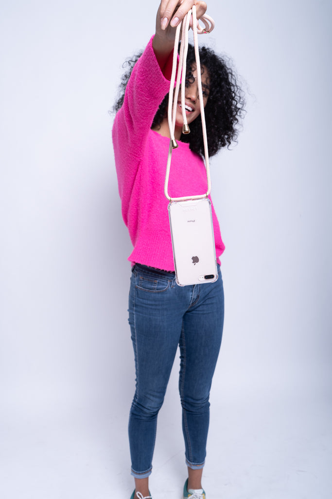 Lou Lou Basic Case te permite colgar el teléfono en todas partes, pues cuenta con un collar ajustable que se conecta a una funda de silicona transparente para tu smartphone. Es un accesorio minimalista, el cual además de darle un plus a tu outfit, libera tus manos y de ahí nace nuestro lema: "Leave your hands Free"